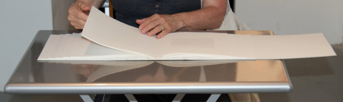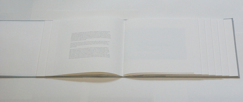 Artist’s book: inkjet printed photographs and text on BFK Rives paper, handbound in cloth, 24.1 x 40.6 cm (9½ x 16 in), 9 signatures, 73 pages